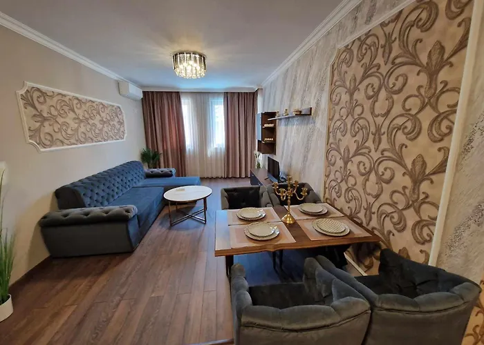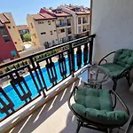 В просторния апартамент за гости Mitprot Panorama Bay 2 Luks Apartment 110 с площ от 75 кв.м. само на 11 минути пеша от плажа - Свети Влас в квартал Юрта гостите са добре дошли да се насладят на частен плувен басейн. Морският курортен град "Слънчев бряг" е на около 10 минути с кола от този апартамент с една спалня, докато автогарата на Свети Влас е на лесно пешеходно разстояние от мястото.
